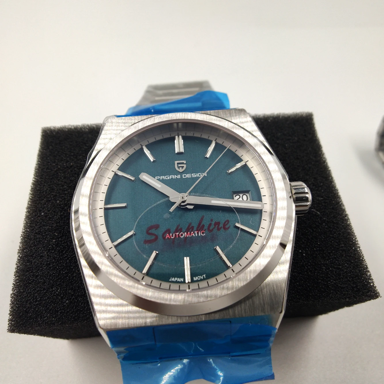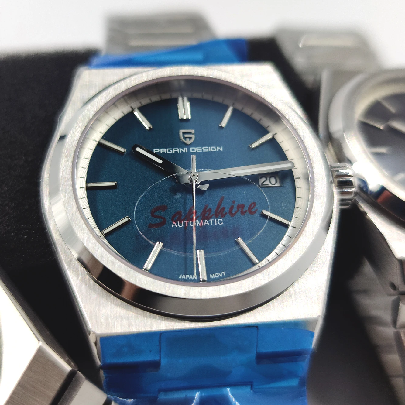 Glass: sapphire crystal, date window mirror (2.5 times magnification effect), AR coating